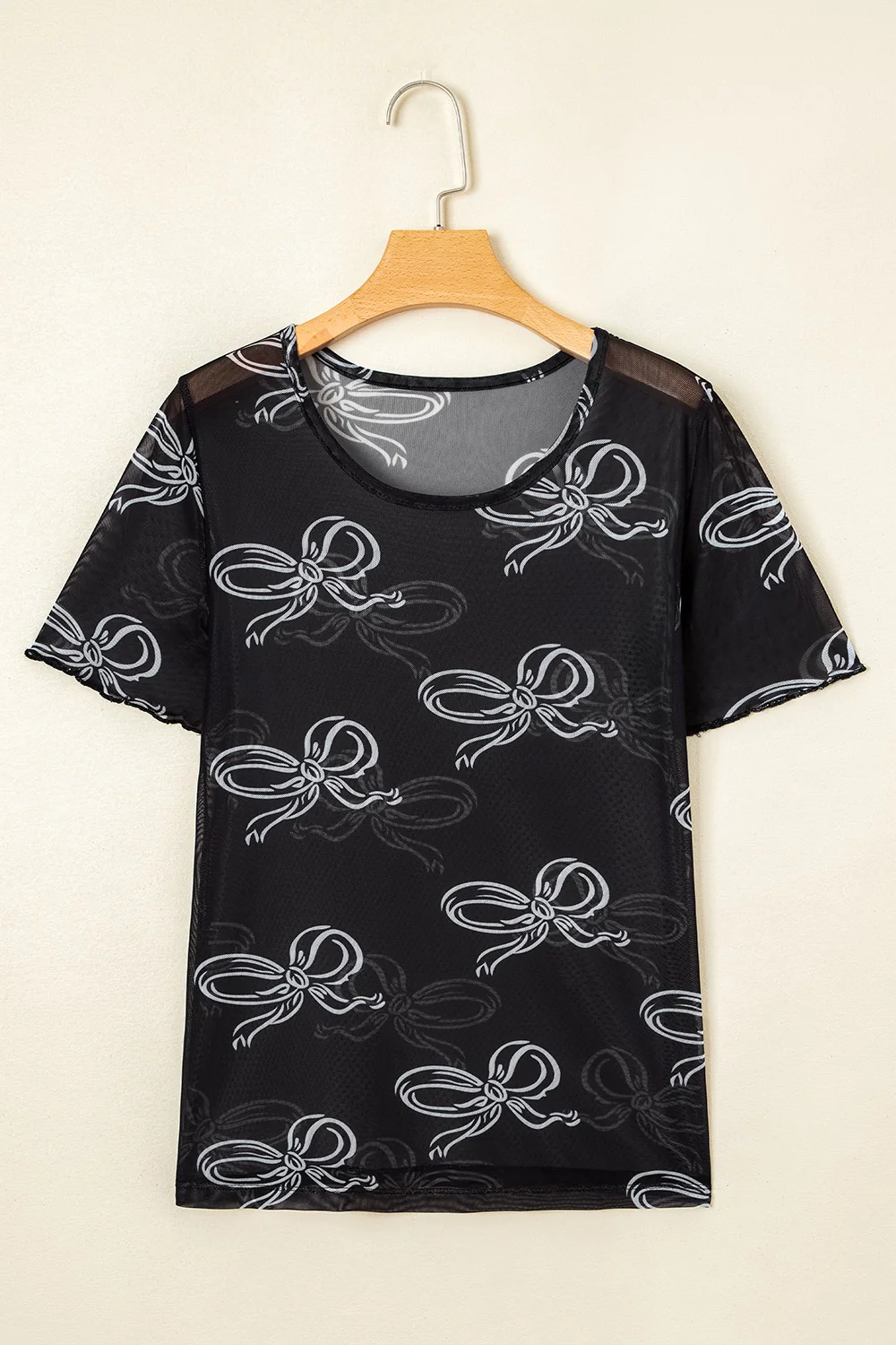 Bow Mesh Round Neck Short Sleeve T-Shirt